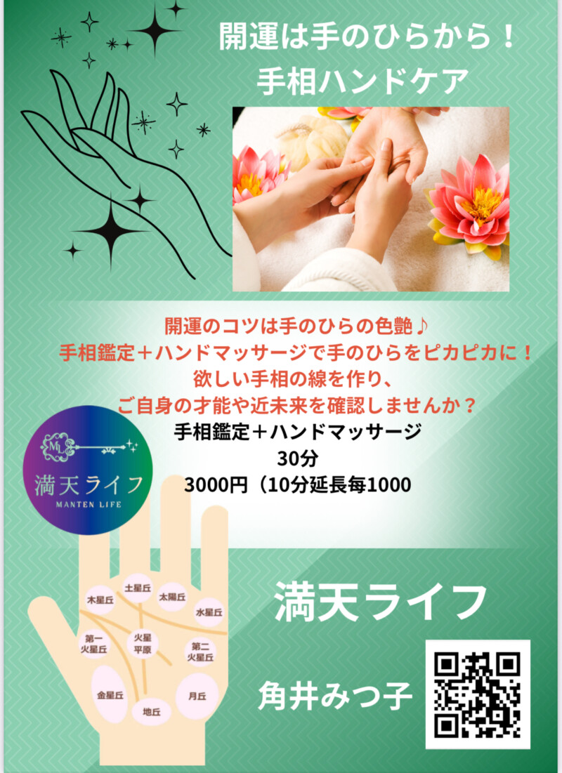 そんな時に、軽いハンドマッサージ+手相+会話で癒されるのが、この新メニューの魅力です✨